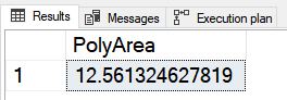 DECLARE @g GEOMETRY; SELECT @g = PolyVarBin FROM [dbo].PolyTable WHERE [PolyName] = 'Point1'; select @g.STArea() as PolyArea;